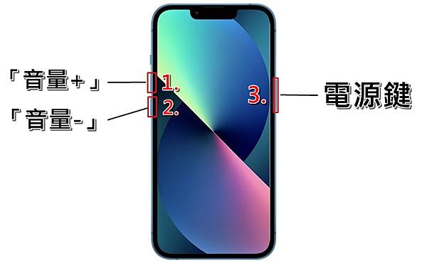 首先按一下「音量鍵(+)」、再按一下「音量鍵( – )」,並在音量圖示消失前,長按右側「 電源鍵」數秒,等到蘋果圖案出現後才能放開,就可以強制重啟iPhone 。