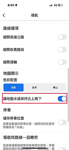 只要打開 Google 地圖,點擊右上角個人頭像,進入設定頁面後找到導航,就能在下方選項中看到「讓地圖永遠保持北上南下」,將它打開後就可以讓 Google 地圖不再依照方位來旋轉,看導航時也不會再暈頭轉向囉!